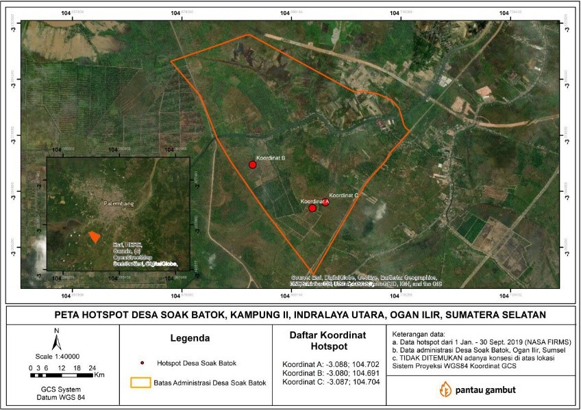 Berdasarkan pantauan lapangan dan diperkuat data yang diperoleh dari Badan Penanggulangan Bencana Daerah (BPBD) Sumsel, asap yang masuk ke desa tersebut bukan hanya berasal dari lahan disekitar desa, akan tetapi berasal dari daerah tetangga, yaitu Desa Bakung, Kecamatan Indralaya Utara, Desa Sungai Rambutan, Kecamatan Indralaya Utara dan Desa Pulau Semambu, Kecamatan Indralaya Utara.