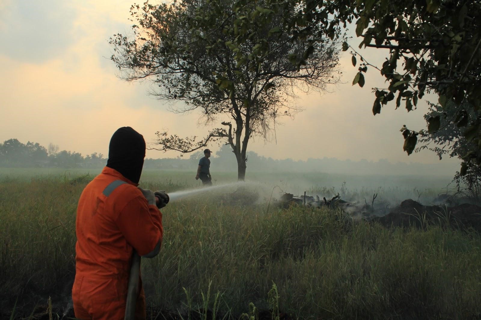 Asap pekat dengan aroma sangit yang menusuk hidung berhasil mengganggu hajatan keluarga Syamsil, warga dusun II, yang berada di dekat lokasi kebakaran. Para tamu merasa sesak saat hendak menyantap hidangan yang disajikan. Api yang semakin membesar di area kebun karet membuat beberapa warga bergegas meninggalkan acara dan segera membawa alat pemadam seadanya seperti ember air dan gayung. Bahkan, mereka tidak sempat menggunakan masker atau alat pelindung diri lainnya saat memadamkan api. Api baru berhasil dipadamkan sekitar pukul 7 malam berkat kegigihan satuan tugas pemadaman darat dan udara, serta masyarakat setempat.