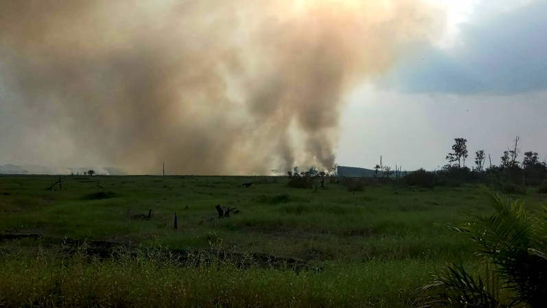 “Ini sudah hari keempat. Awalnya api diperkirakan dari Indragiri Hilir, kabupaten sebelah. Di sana sudah sejak enam hari lalu,” ujarnya.