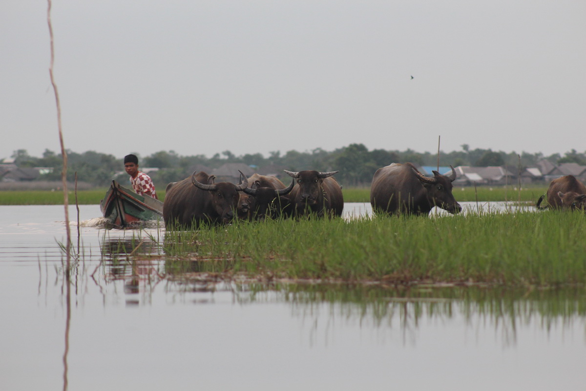Selain sebagai sumber perikanan dan pertanian, rawa gambut juga menjadi habitat kerbau kalang (kerbau rawa). Saban hari ratusan kerbau kalang menggantungkan nasib pada lahan ini. Mereka keluar kandang saban subuh, digembalakan di hamparan rawa mencari makan sepanjang hari, dan pulang ke kandang masing-masing saat magrib menjelang.