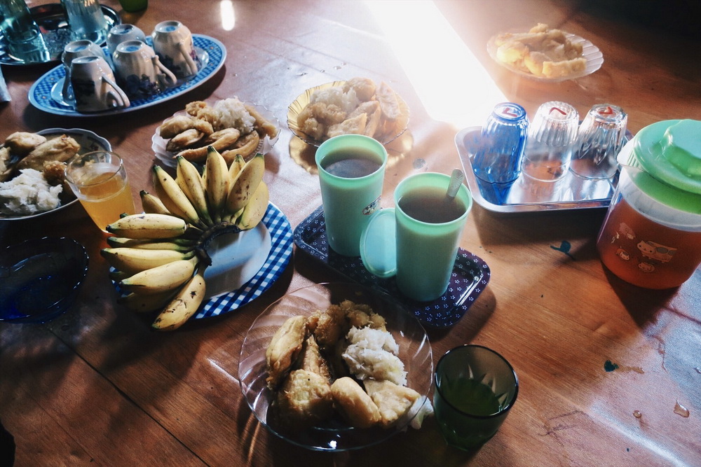 Sajian kue buatan tangan, istri Pak Noerhadi kami lahap dengan bahagia. Favorit saya adalah ‘salada jawau’ semacam manisan dari parutan singkong dan kelapa yang pas sekali dinikmati dengan kopi manis. Selama kami tinggal di sana, kamipun terus dimanjakan dengan hidangan lezat berbagai jenis ikan, sayur, sambal sereh dan nasi hasil pertanian dan kolam penangkapan ikan ekosistem gambut. Bagi penghuni Desa Mantangai Hulu, gambut adalah sumber kehidupan.
