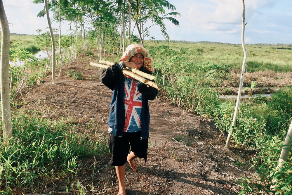 Perjalanan dengan kelotok kecil menyusuri kanal-kanal untuk sampai ke lahan pertanian membuat saya berpikir mengenai infrastruktur yang diperlukan agar mereka dapat memperoleh keuntungan ekonomi dari upaya bertani tanpa bakar. Melihat kelompok tani ini saya semakin percaya bahwa pelibatan masyarakat dalam pemanfaatan dan pengelolaan adalah bagian penting dari upaya memulihkan gambut.