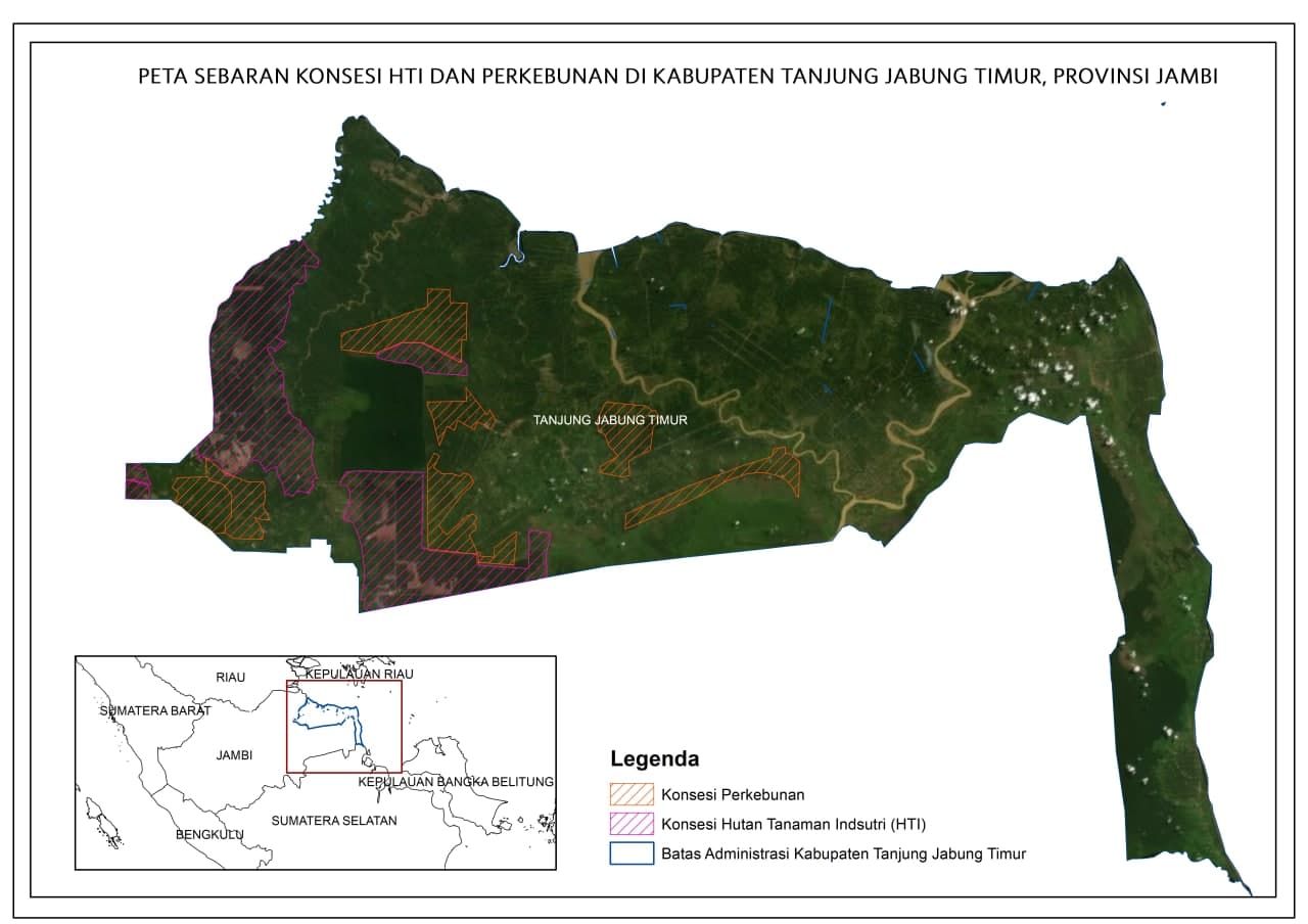 Kebakaran dan eksploitasi lahan gambut di Tanjung Jabung Timur ikut menggerus habitat pohon nipah yang tumbuh subur di pinggiran sungai. Dari total 181 ribu hektar lahan gambut, sebagian besar telah dikuasai perusahaan perkebunan dan HTI. Banyak gambut rusak dan akhirnya memicu kebakaran berulang.