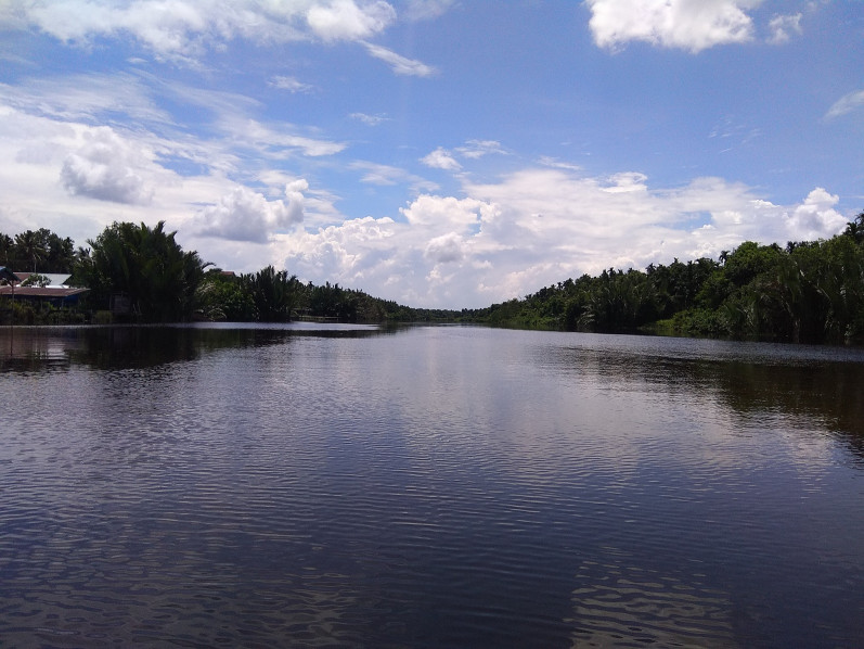 Suara kecipak dayung memecah keheningan anak sungai yang membelah Desa Sungai Beras, Kecamatan Mendahara Ulu, Kabupaten Tanjung Jabung Timur, Provinsi Jambi. Di antara rimbunnya batang nipah (Nypa fruticans) yang tumbuh liar sepanjang sungai, Marwiyah mengayunkan parangnya menebas pelepah nipah yang mulai meranggas. Parang bergerak liar, membabat satu per satu pelepah nipah, perlahan menumpuk dalam sampan.