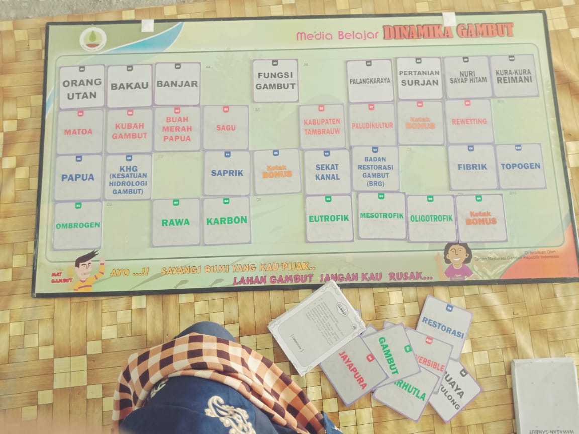 Permainan ular tangga ini menjadi tambahan media pembelajaran untuk melatih anak-anak dalam mempelajari apa saja praktik baik dalam menjaga alam sekitarnya termasuk lahan gambut.