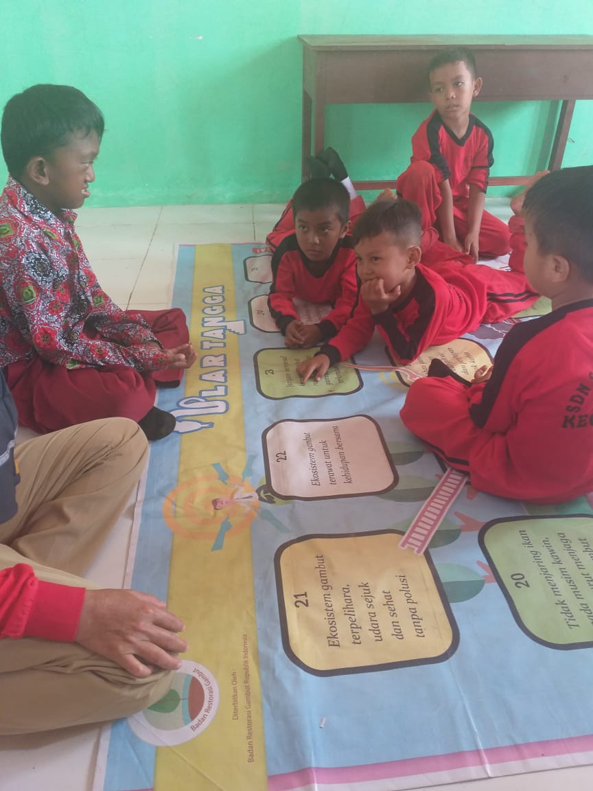 Misalnya, jika anak-anak yang bermain berada di angka yang memiliki pion tangga, ia harus mampu menyebutkan salah satu praktik baik dalam menjaga alam. Jika jawaban tersebut dinilai benar oleh teman-temannya, ia bisa naik tangga.