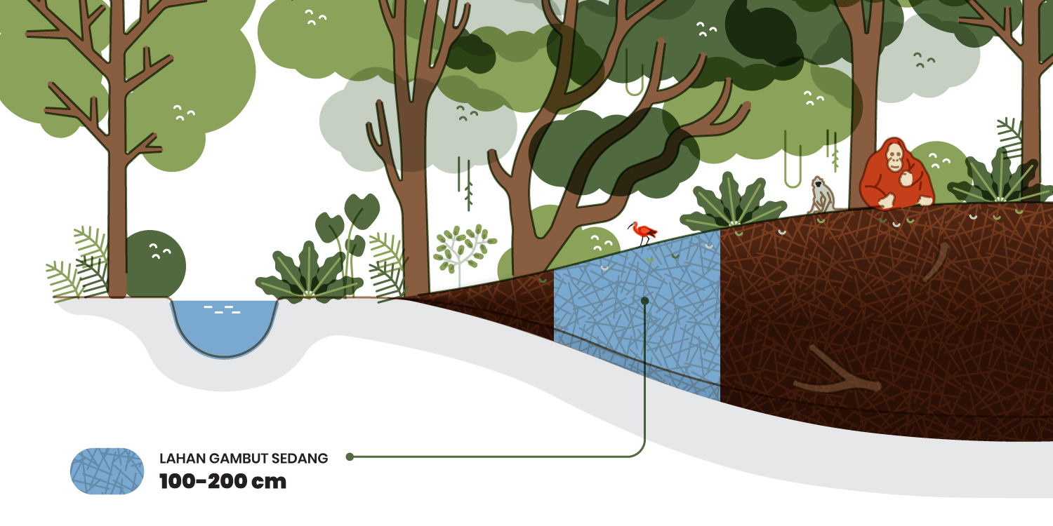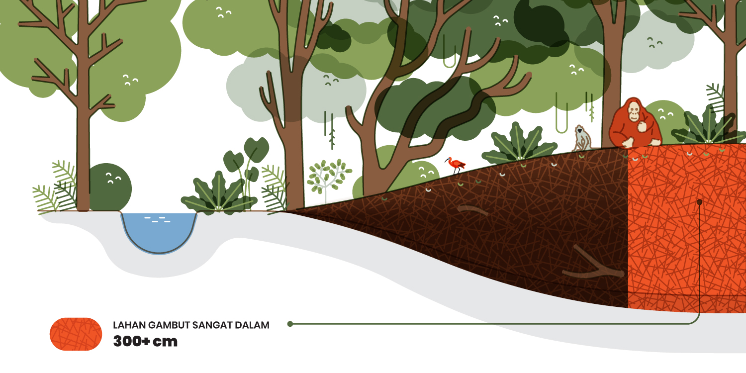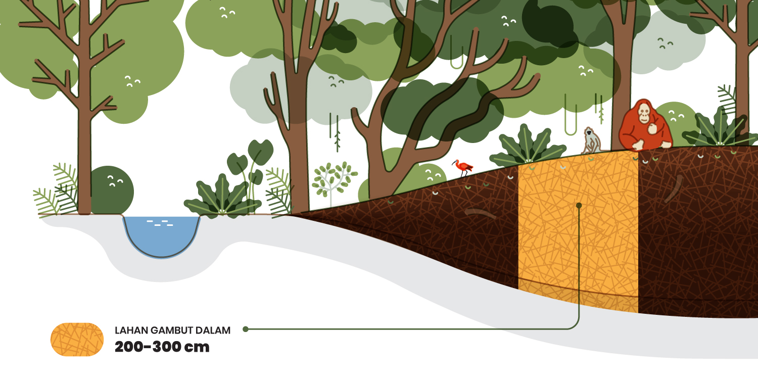 Gambut sangat dalam, dengan ketebalan >300 cm