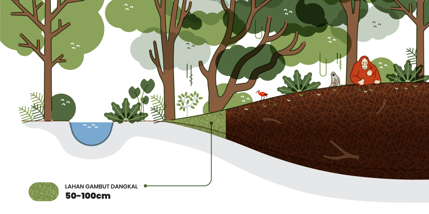 Gambut dangkal, dengan ketebalan 50 – 100 cm