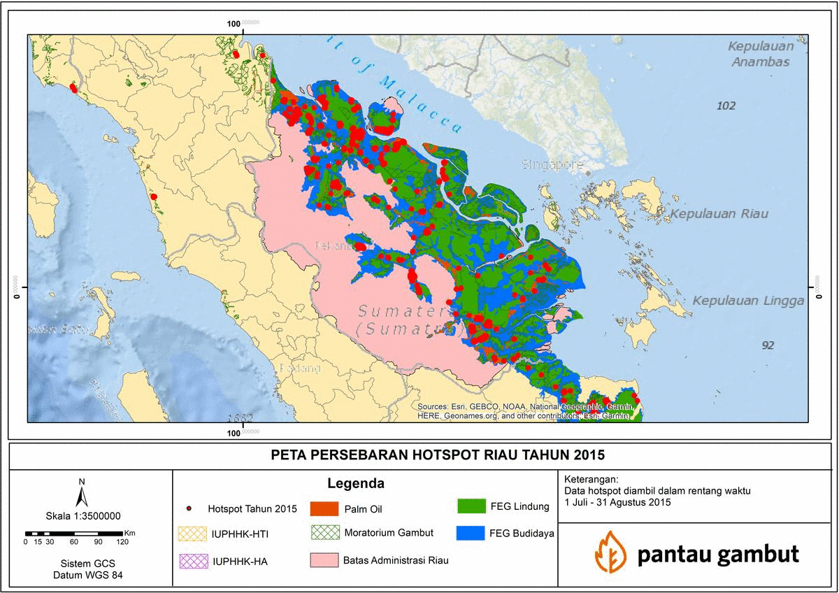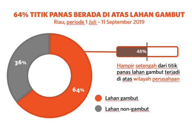 Analisis Global Forest Watch menunjukkan titik panas yang muncul di Provinsi Riau pada periode 1 Juli – 11 September 2019 berjumlah 21.833 titik. Dari jumlah tersebut, 64% titik panas berada di atas lahan gambut, dan 48% terdapat di atas wilayah budidaya berizin. Jumlah ini diprediksi akan terus meningkat mengingat kemarau panjang masih akan berlangsung hingga November 2019.